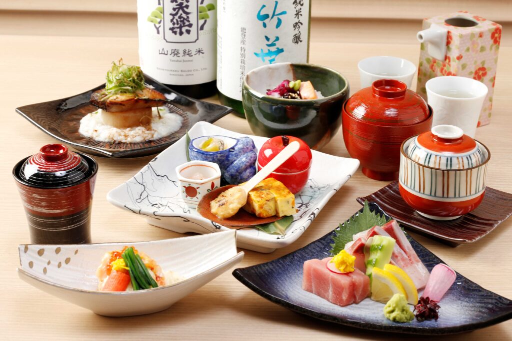 日本酒との相性も抜群の旬会席。バランスの良い料理構成で銘々盛りでご提供しますので、ご接待にもおススメです。