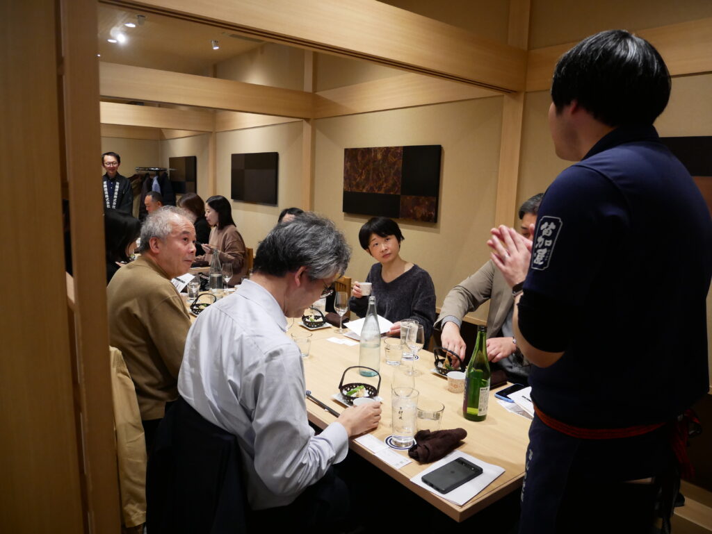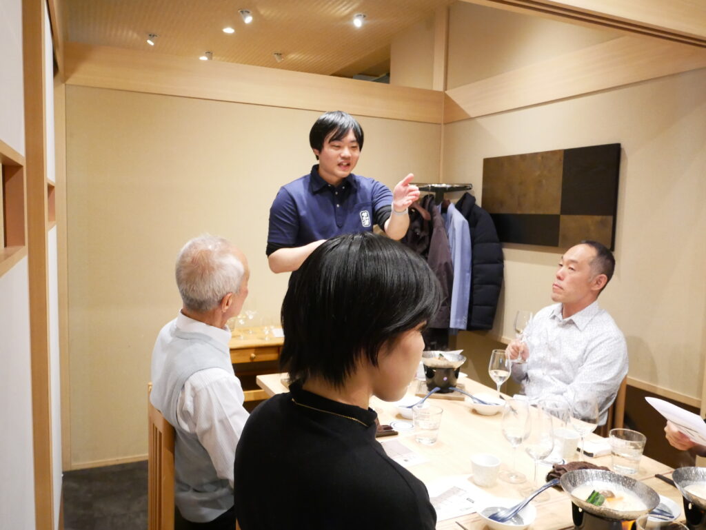 富山県砺波市に蔵を構える若鶴酒造より、杜氏の田村さまと営業の幸坂さまを赤坂店にお招きし、ペアリングイベント「おさけの会」を開催いたしました。