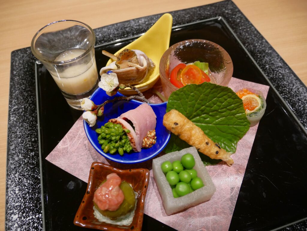目でも舌でも楽しめる名物の八寸八種盛り。